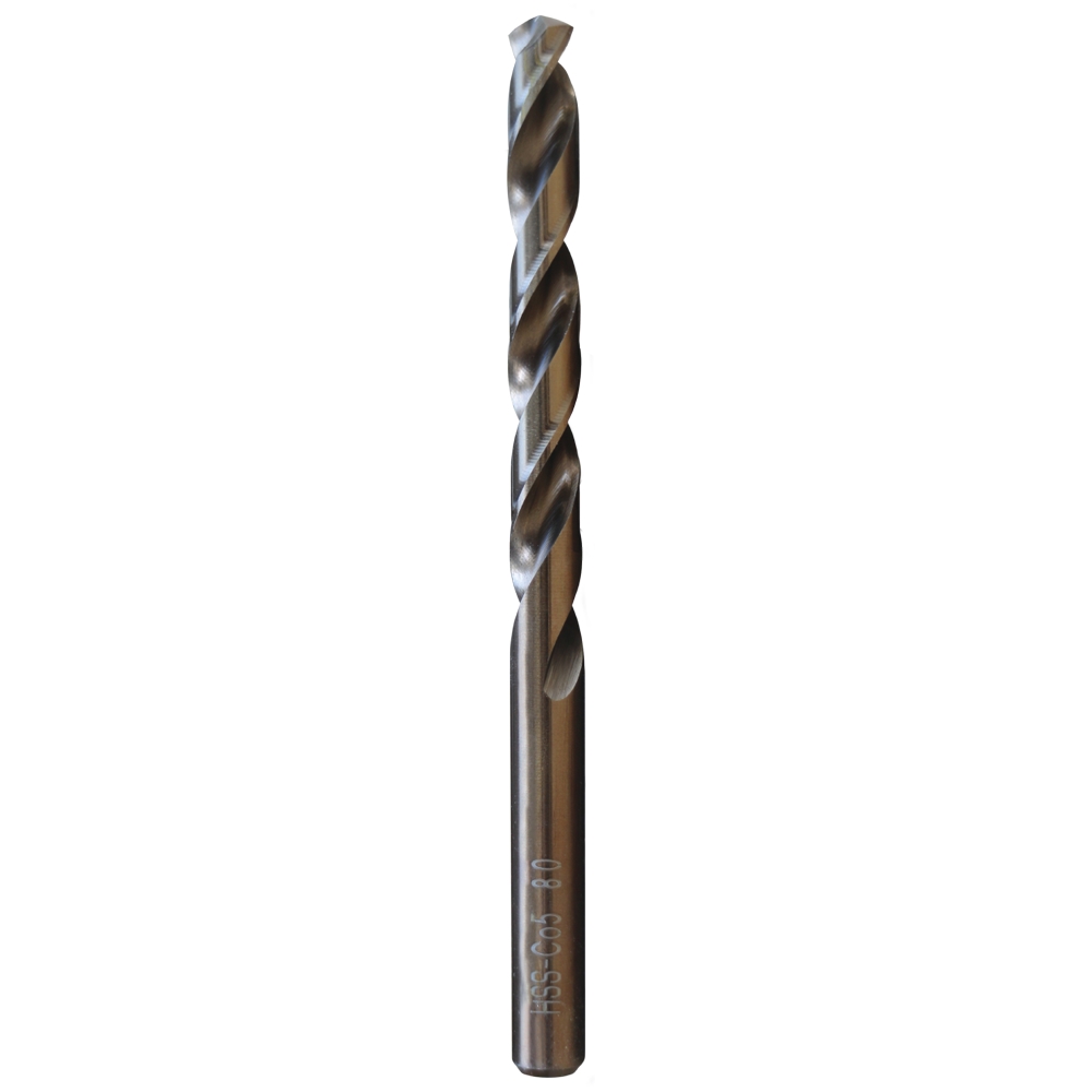 HSS Cobalt drill ground with a glossy finish, which gives it a longer lifespan and makes it ideal for working with steel alloys. It has a sharpening angle at the tip of 130º and a cylindrical shaft. Cut to the right.